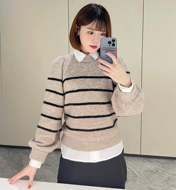 Vào những ngày trời lạnh, một chiếc áo len kẻ vừa giúp chị em giữ ấm cơ thể lại "hack" tuổi triệt để.