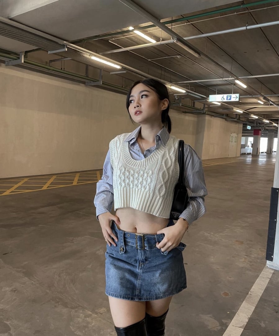 Các nàng cũng có thể diện áo gile len họa tiết nanh sói cùng sơ mi trắng và chân váy ngắn xếp ly. Còn muốn an toàn, bạn cứ chọn những mẫu trơn với màu trung tính nhé.